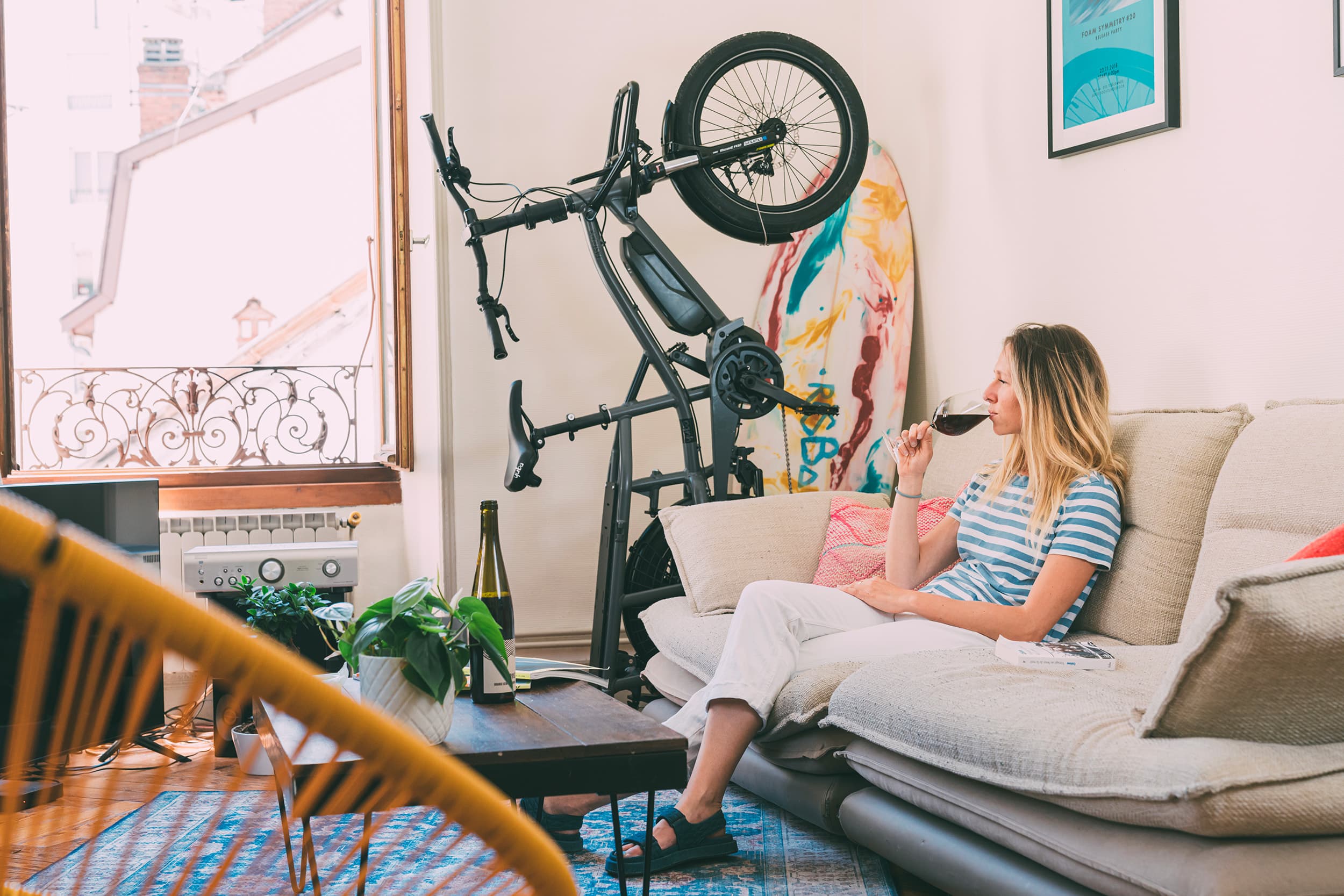 Save space. In cramped city spaces, with the cost of garages and parking spaces skyrocketing, it is priceless to be able to easily carry your vehicle into lifts and hallways, taking up minimal storage space. And parking at home remains the best anti-theft system! Thanks to the small wheels integrated in its frame, Yuba Fastrack can be transported vertically and parked in the space of a Billy Ikea bookcase!
